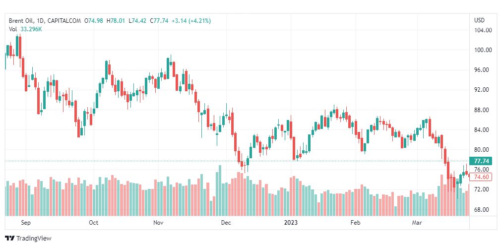 يذكر ان اسعار عقود نفط خام برنت (الرمز: BZ) تغلق تداولات يوم أمس بإيجابية قوية ليخترق مستوى 76.55 ويصل إلى مناطق 78.50، ممهداً الطريق أمام إجراء تصحيح صاعد متوقع خلال الجلسات القادمة، مع الإشارة إلى أن اختراق المستوى الأخير سيدفع السعر إلى 80.50 بشكل مباشر.
