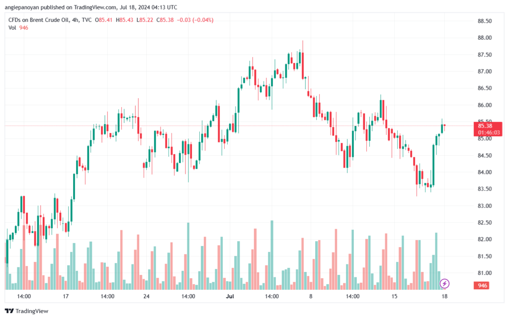 توصية شراء خام برنت تنص على الدخول فوق نقطة الارتكاز 83.9706 وجني الأرباح عند الأهداف التالية: 84.6363, 85.5216, 86.1873