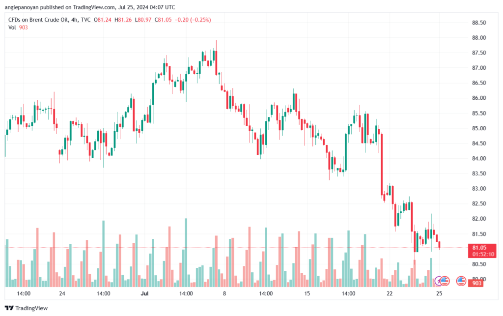 توصية بيع خام برنت تنص على الدخول ادنى نقطة الارتكاز 81.5583 وجني الأرباح عند الأهداف التالية: 80.8966, 80.2723, 79.6106