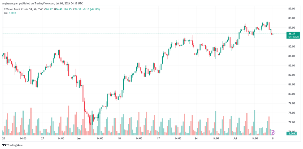 نطاق التداول المتوقع بين الدعم 85.00$ والمقاومة 88.00$.
