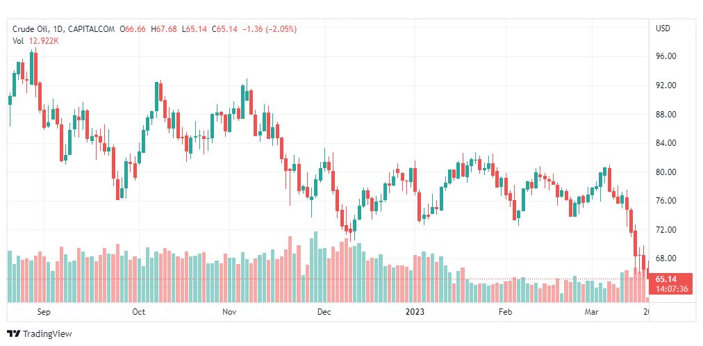 واصلت أسعار نفط خام تكساس (الرمز: CL) الهبوط بشكل قوي لتصل إلى القاع المسجّل عند 65.67 وتضغط سلباً عليه. وهذا يدعم فرص استمرار الاتجاه الهابط المتوقع على المدى القصير والمتوسط، ونرجّح زيارة مستوى 64.00 خلال الجلسات القادمة.