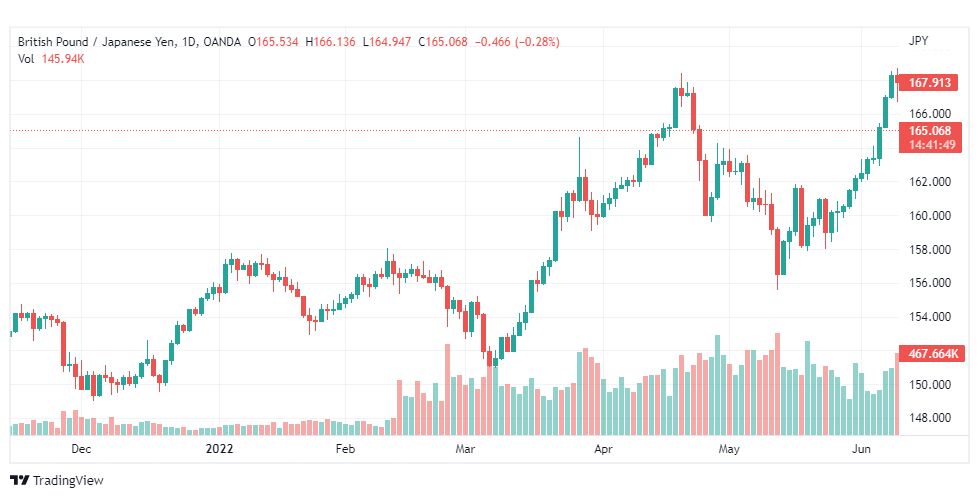زوج الباوند مقابل الين في حالة انخفاض