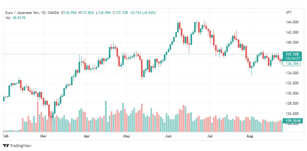 زوج اليورو مقابل الين في حالة صعود