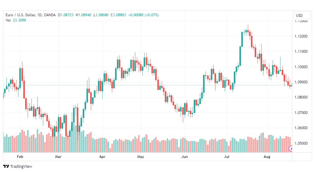 حسب ما ورد فان عملة اليورو مقابل الدولار الامريكي (الرمز: EURUSD) يتذبذب حول مستوى 1.0880، وأغلق تداولات يوم أمس دونه، ليبقى سيناريو الاتجاه الهابط فعالاً للفترة القادمة، والذي يتواجد هدفه التالي عند 1.0785.