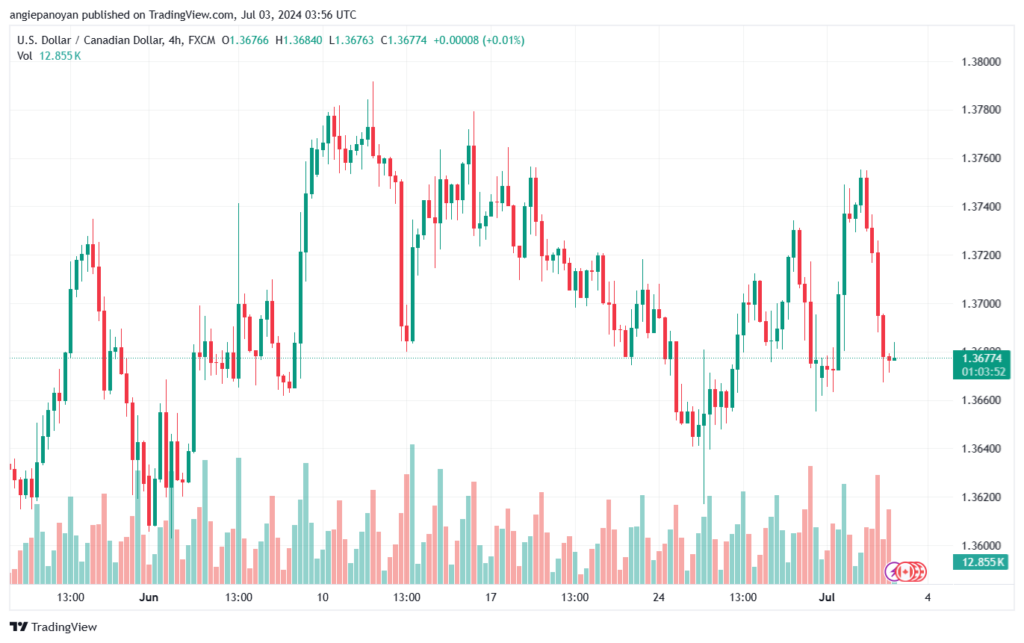 شهد سعر  عملة الدولار الامريكي مقابل الكندي (الرمز USDCAD) هبوطاً قوياً يوم أمس، حيث كسر مستوى 1.3690$ واستقر دونه، مما يشير إلى احتمال ضغط سلبي في الجلسات القادمة. ومع ذلك، نلاحظ أن مؤشر ستوكاستيك يقدم إشارات إيجابية قد تدفع السعر للتعافي مجدداً.
