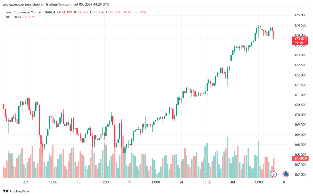 سجل سعر زوج عملة اليورو مقابل الين الياباني الرمز (EURJPY) إغلاقاً سلبياً جديداً دون المقاومة الممتدة نحو 174.50، مما دفعه لتشكيل بعض الموجات التصحيحية الهابطة والوصول إلى مستوى 173.70.