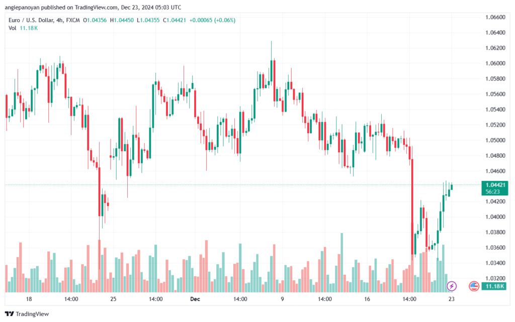 تحليلات يورو مقابل الدولار الامريكي (الرمز: EURUSD) تحليل اليورو دولار 23/12/24 مرفق توقعات خبراء موقع توصيات لأهداف مستويات تداول عقود زوج العملات يورو/دولار على الصعيد اليومي مع مستويات الدعم والمقاومة المفتاحية اليوم.