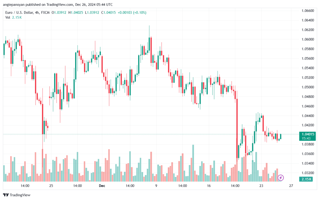 تحليلات يورو مقابل الدولار الامريكي (الرمز: EURUSD) تحليل اليورو دولار 26/12/24 مرفق توقعات خبراء موقع توصيات لأهداف مستويات تداول عقود زوج العملات يورو/دولار على الصعيد اليومي مع مستويات الدعم والمقاومة المفتاحية اليوم.