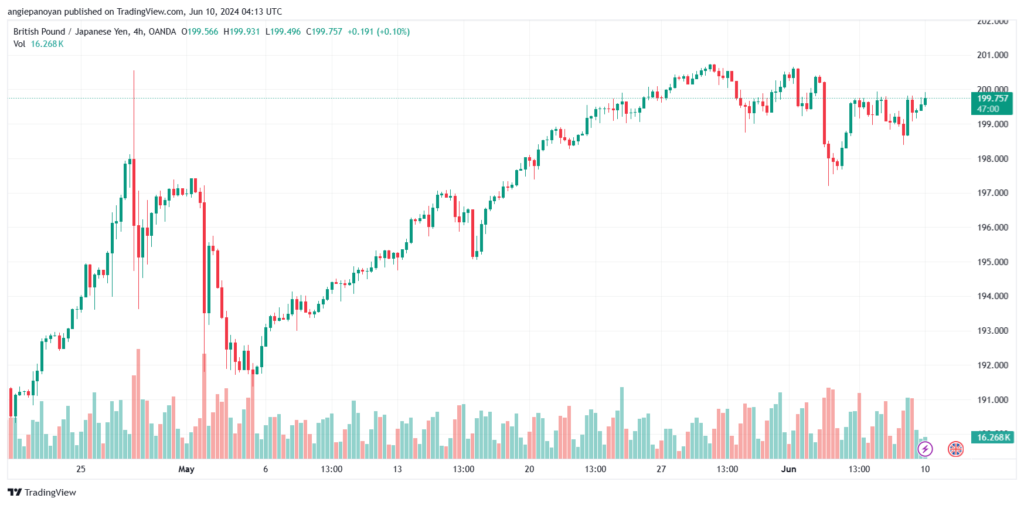 وصل زوج عملة الجنيه الاسترليني مقابل الين الياباني الرمز (GBPJPY) الى مستوى 199.676، مما يدل على أداء قوي للجنيه الإسترليني في الأسواق المالية. يشير المتوسط المتحرك لـ 50 يوم إلى اتجاه صاعد مستمر، بينما المتوسط المتحرك لـ 200 يوم يدعم الاتجاه الصاعد على المدى الطويل. من الناحية الفنية، مؤشر القوة النسبية (RSI) يقترب من منطقة التشبع الشرائي عند مستوى 72، مما يشير إلى احتمالية تصحيح قريب، في حين يظهر مؤشر MACD استمرار الإشارة الصاعدة مع تباعد الخطوط، مما يدل على زخم صعودي قوي.