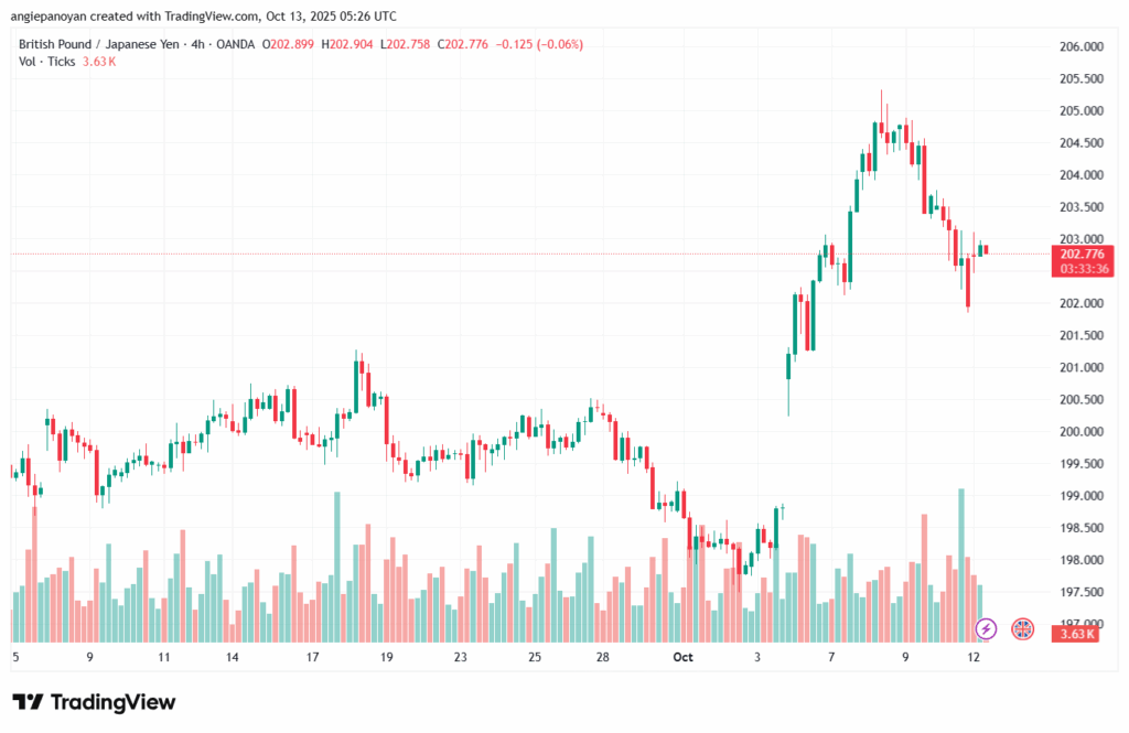 العوامل التي تؤثر على زوج العملات باوند/ين ياباني اليوم 2025-10-13