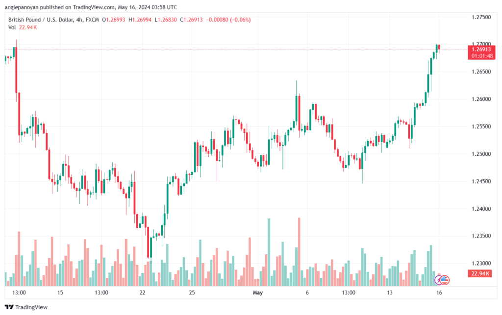 ارتفع سعر عملة الجنيه الاسترليني مقابل الدولار الامريكي الرمز (GBPUSD) بشكل ملحوظ يوم أمس، حيث تمكّن من اختراق خط الرقبة لنموذج القاع المزدوج ووصل إلى هدفنا الأول المتوقع عند 1.2700$. نتوقع المزيد من الارتفاع بفعل النموذج المذكور، مما قد يدفع السعر لتجاوز هذا المستوى والتوجه نحو 1.2800$ كمحطة إيجابية تالية.
