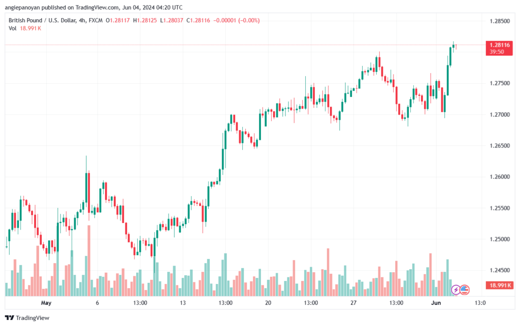 ارتفع سعر عملة الجنيه الاسترليني مقابل الدولار الامريكي الرمز (GBPUSD) بقوة يوم أمس، متجاوزاً حاجز 1.2800$ ومستقراً فوقه، مما يعزز التوقعات باستمرار الاتجاه الصعودي على المدى القريب. السعر في طريقه للوصول إلى مستوى 1.2893$ كهدف رئيسي تالي.