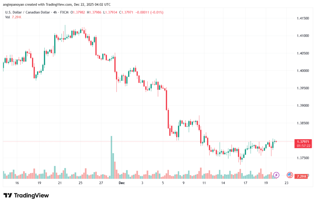 العوامل التي تؤثر على زوج العملات دولار/كندي اليوم 2025-12-22