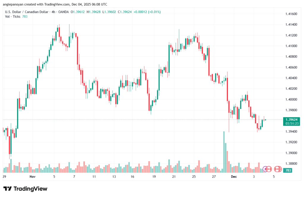 أخبار عملة الدولار الكندي اليوم 2025-12-4 تحليل الدولار الكندي