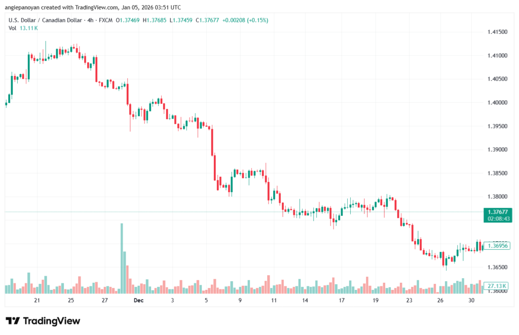 أخبار عملة الدولار الكندي اليوم 2026-1-5 تحليل الدولار الكندي