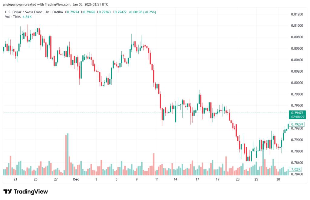 عملات دولار/فرنك سويسري اليوم 2026-1-5