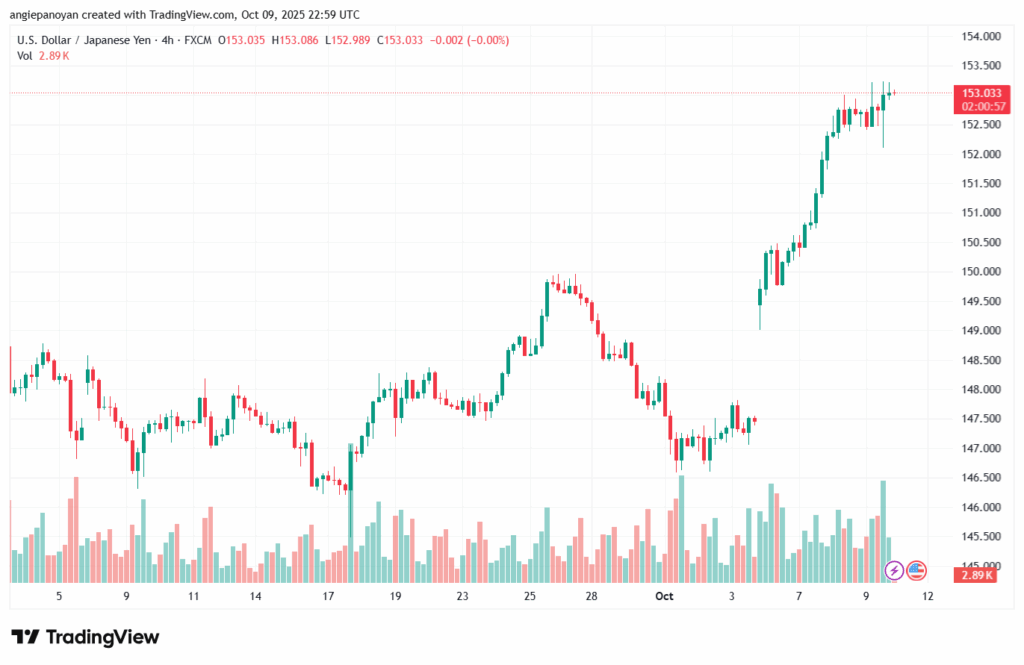 العوامل التي تؤثر على زوج العملات دولار/ين ياباني اليوم 2025-10-10