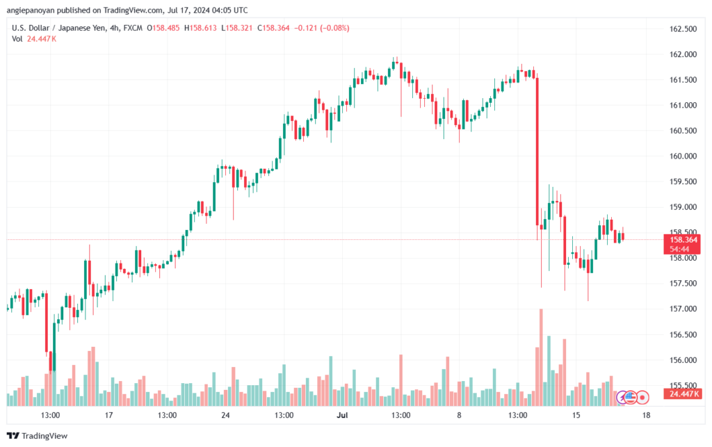 توصية شراء دولار/ين ياباني تنص على الدخول فوق نقطة الارتكاز 157.874 وجني الأرباح عند الأهداف التالية: 158.583, 159.137, 159.846.