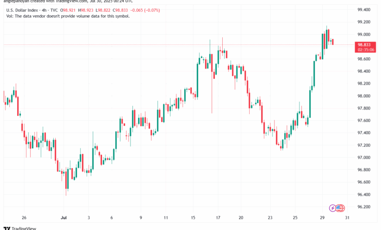 أكمل القراءة »تحليل مؤشر الدولار الأمريكي اليوم 2025-8-01 تحليل مؤشر الدولار الأمريكي (الرمز: DXY) مرفق توقعات خبراء موقع توصيات لأهداف مستويات تداول…