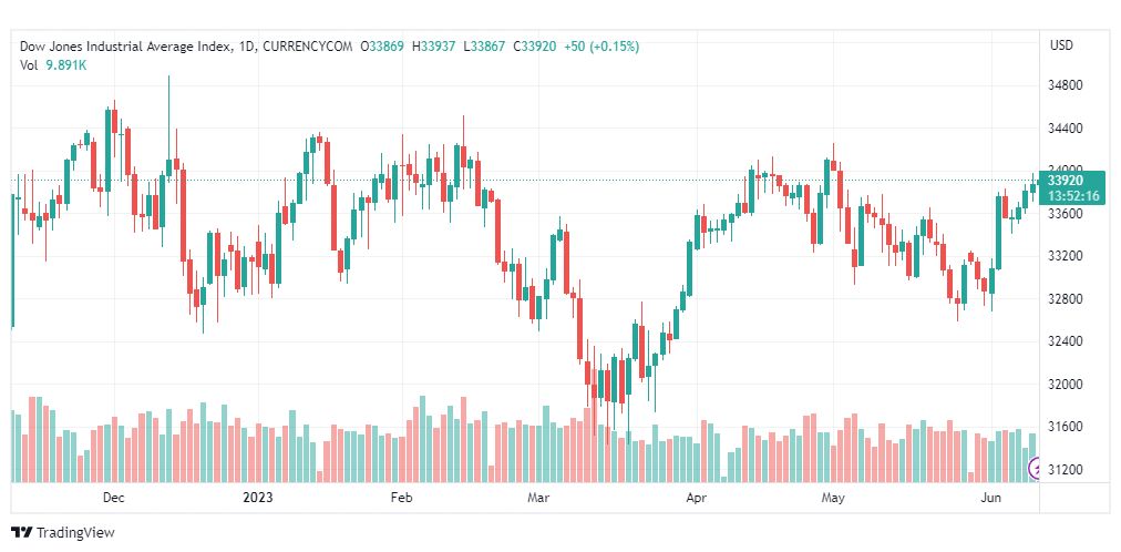 حسب ما ورد فان سعر مؤشر داو جونز الاسهم الامريكية الصناعية (الرمز: DJI) لا يزال متمركزا حتى هذه اللحظة قرب المقاومة المستقرة قرب 33980 متأثرا بتقديم المؤشرات الرئيسية للعزم الإيجابي حتى هذه اللحظة وليجبره ذلك على تأجيل الهجوم السلبي المنتظر سابقا.