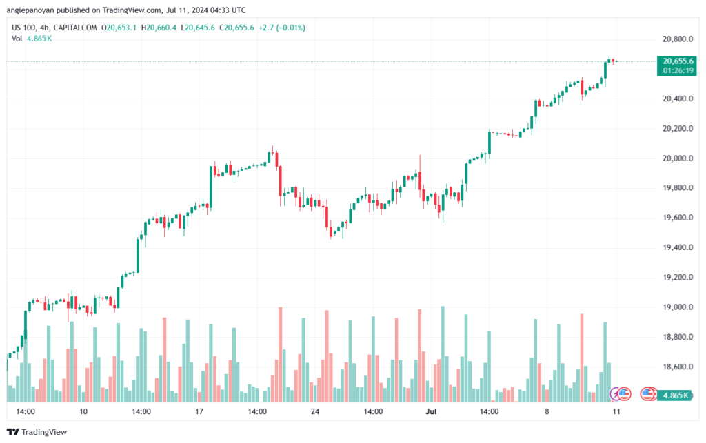 تقدم سعر مؤشر ناسداك للأسهم الامريكية التكنولوجية (الرمز NASDAQ) بإيجابية قوية يوم أمس ليقترب من هدفنا المنتظر عند 20785.00، ويستمر التوقع بمواصلة الميل الصاعد لزيارة مستوى 20860.00 كهدف رئيسي تالي، مما يجعل الاتجاه الصاعد مستمراً وفعّالاً للفترة القادمة.