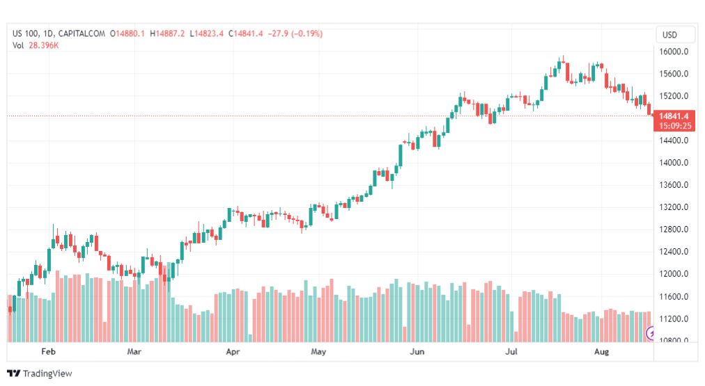 حسب ما ورد فان مؤشر ناسداك للأسهم الامريكية التكنولوجية (الرمز: NASDAQ) لا يزال متأثرا بالعوامل السلبية المتمثلة بتشكيل مستوى 15180.00 للحاجز الإضافي وبمحاولة تسلل مؤشر ستوكاستيك نحو مستوى تشبع البيع ليقترب بذلك من الهدف السلبي المستقر عند 14850.00.