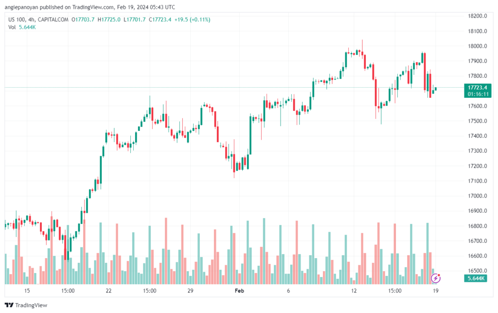 فقد سعر مؤشر ناسداك للأسهم الامريكية التكنولوجية (الرمز NASDAQ) في تداولات يوم الجمعة العزم الإيجابي بسبب هبوط مؤشر ستوكاستيك دون مستوى 50، مما أدى إلى تأجيل الاندفاع الصاعد مؤقتًا وتقديم تداولات جانبية قرب مستوى 17780.00. يجدر بالذكر أن هذا الارتداد لن يؤثر على المسار الرئيسي الصاعد، نظرًا للثبات العام ضمن محاور القناة الصاعدة كما هو موضح في الرسم المرفق، بالإضافة إلى الثبات المتكرر فوق الدعم الأولي المستقر قرب مستوى 17560.00.