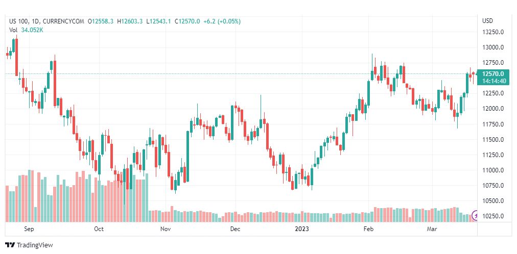 حسب ما ورد فان سعر مؤشر ناسداك الاسهم الامريكية التكنولوجية (الرمز: NASDAQ) حافظ على تمركزه ضمن محاور القناة الصاعدة. مقدما بعض التذبذب الجانبي باستقراره مؤخرا قرب 12700.00, نشير إلى أت ثبات الدعم الإضافي المستقر عند 12355.00 وبمحاولة تقديم المؤشرات الرئيسية للعزم الإيجابي الإضافي. يدعم فرص تجاوز السعر للحاجز المستقر عند 12910.00.