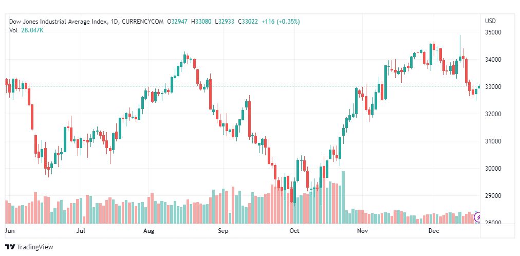 حسب ما ورد فان سعر مؤشر داو جونز فشل بتأكيده لكسر الدعم المحوري المتمركز قرب 32800 وبذلك يجبره على تأجيل الهجوم السلبي والاندفاع بشكل تصحيحي نحو المتوسط المتحرك 55 المتمركز عند 33250 تقريبا.