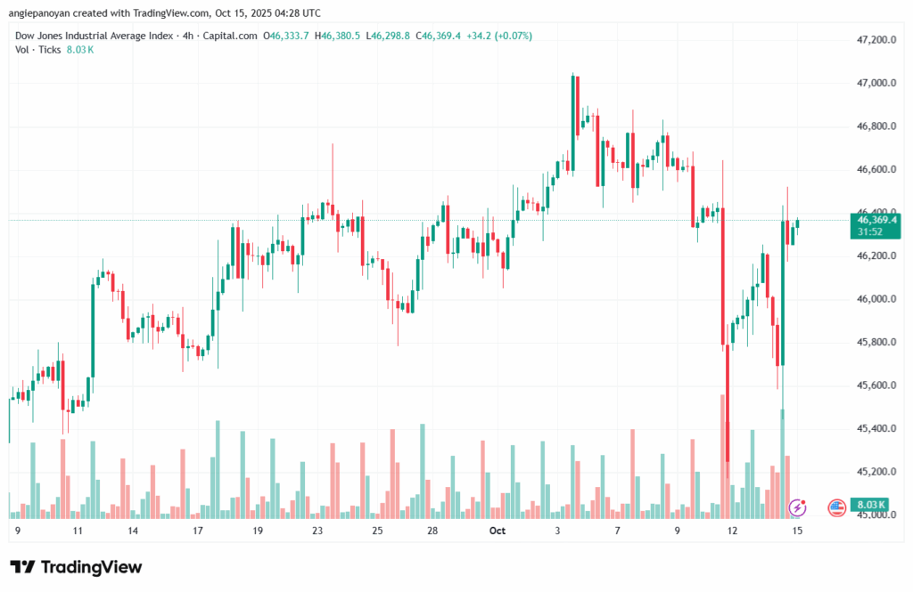 أخبار مؤشر داو جونز اليوم 2025-10-15