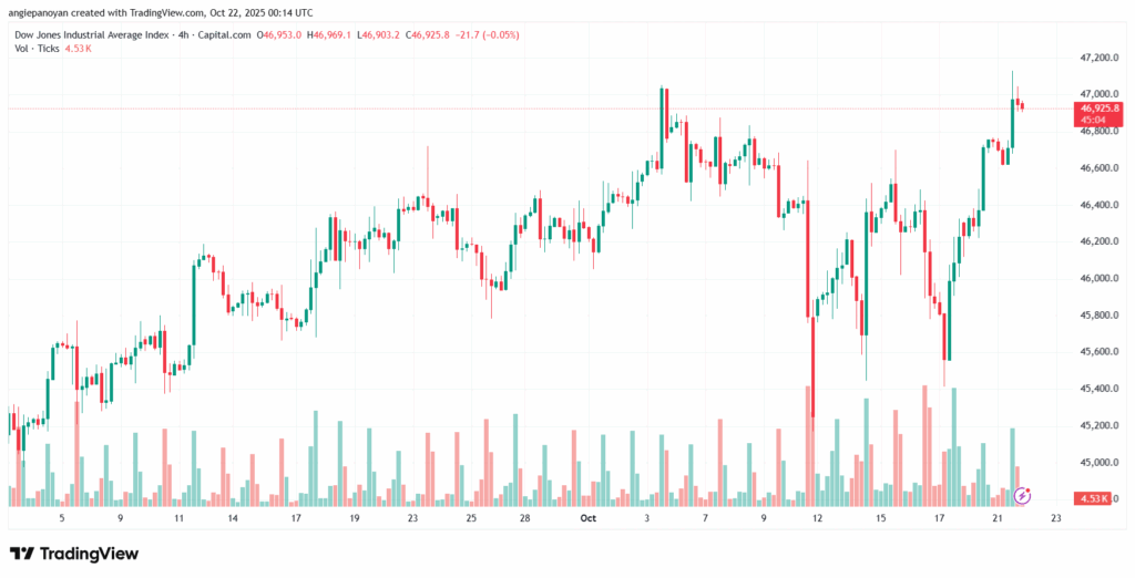 أخبار مؤشر داو جونز اليوم 2025-10-22