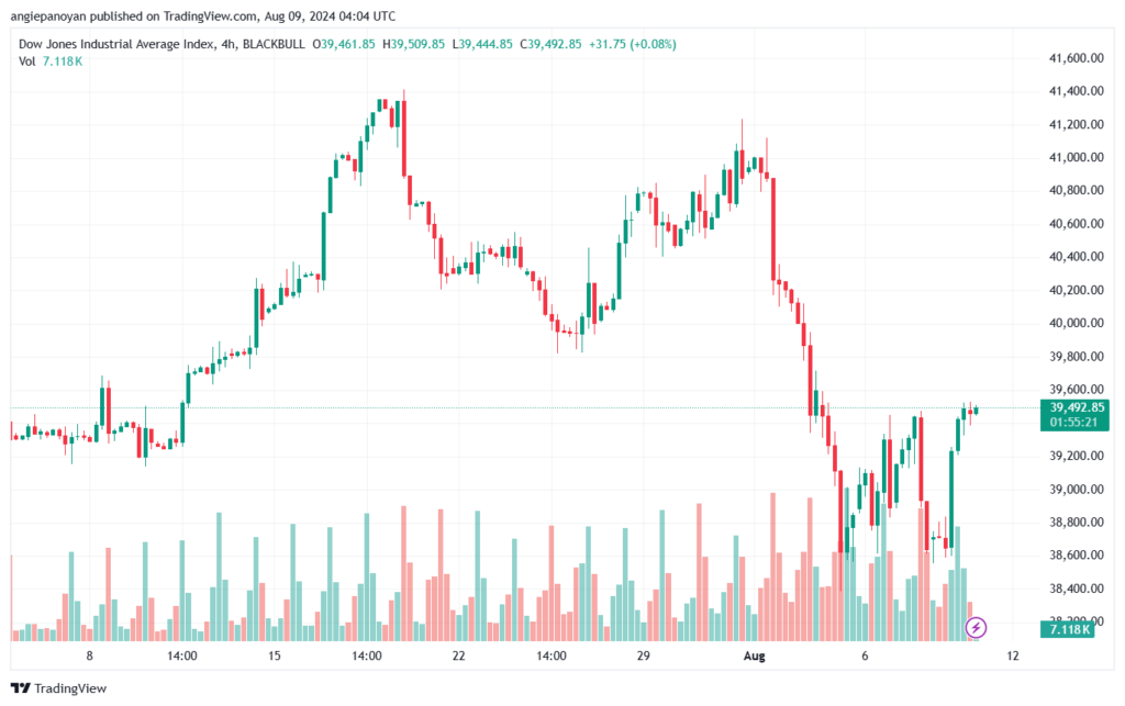 توصية شراء مؤشر داو جونز تنص على الدخول فوق نقطة الارتكاز 39208.72 وجني الأرباح عند الأهداف التالية: 39842.22, 40180.22, 40813.72