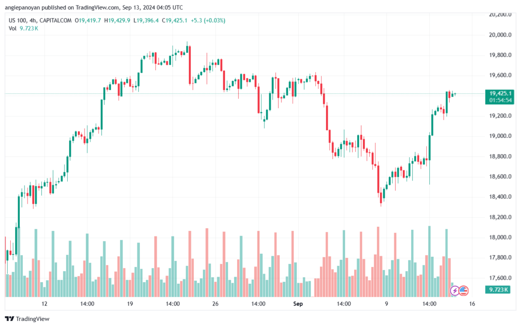 توصية شراء مؤشر ناسداك تنص على الدخول فوق نقطة الارتكاز 19009.187 وجني الأرباح عند الأهداف التالية: 19491.313, 19755.187, 20237.313.