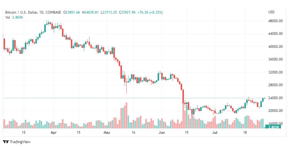 يذكر ان سعر البتكوين (BTCUSD) في حالة ارتفاع ليصل إلى مقاومة القناة الصاعدة التي تظهر بالصورة، نحن الان ننتظر مزيد من الارتفاع لزيارة مستوى 24786.05 الذي يمثّل هدفنا الرئيسي التالي.
