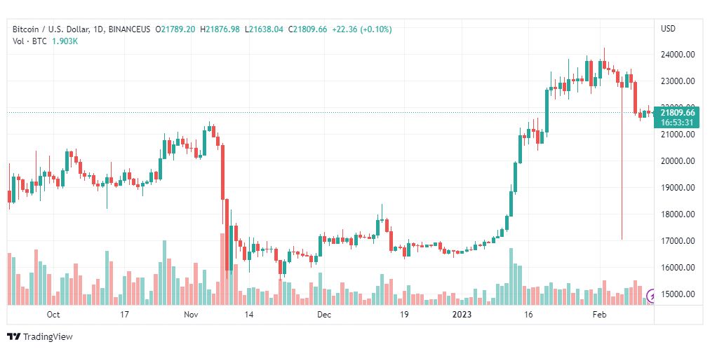 تحليل البيتكوين دولار BTCUSD – 13/02/2023