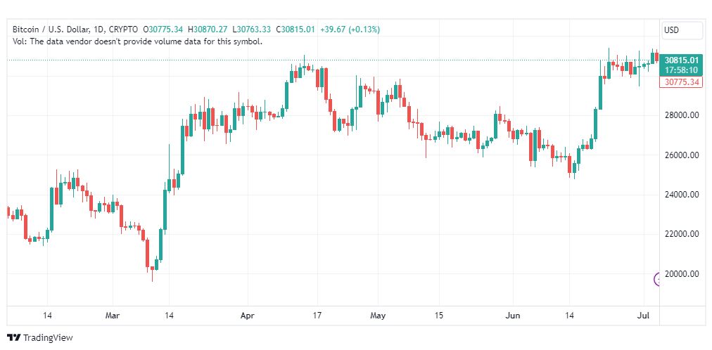 من المتوقع ان يكون نطاق التداول لهذا اليوم ما بين الدعم 30400.00 والمقاومة 31200.00