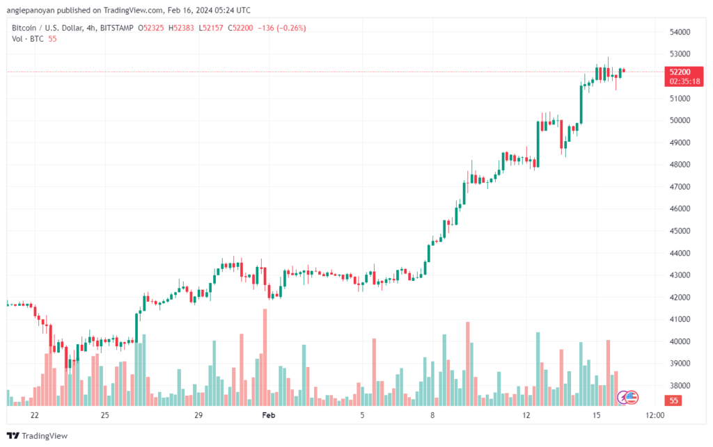 تحليل البتكوين دولار BTCUSD – 16/2/2024