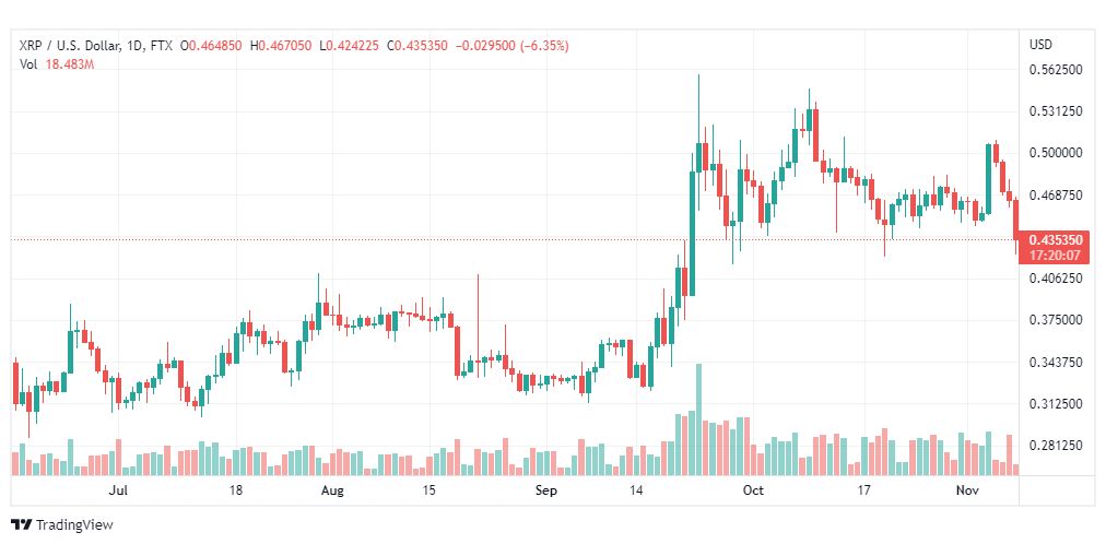 حسب ما ورد فان عملة الريبل (Xrp) (Ripple) حققت تراجعا في التعاملات الصباحية اليوم من 0.4666 $ حتى مناطق 0.4245 $.