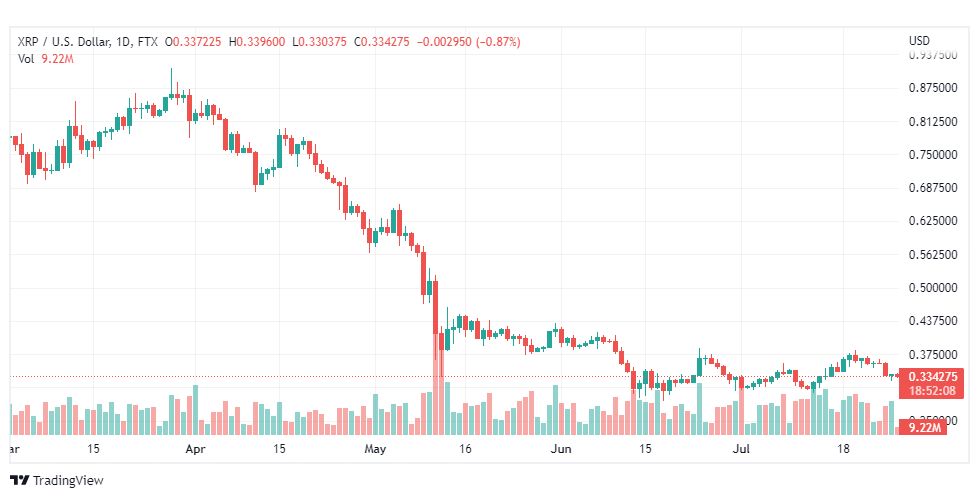 حسب ما ورد فان عملة الريبل (Xrp) (Ripple) حققت فشلا في اختراق مناطق مقاومة 0.3397 $ في التعاملات الصباحية اليوم نتيجة ضعف عزم المشترين، بالتالي مرة أخرى نحو مناطق 0.3304$.