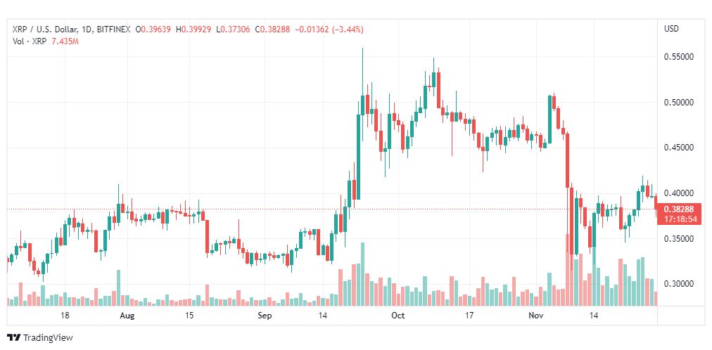 حسب ما ورد فان عملة الريبل (Xrp) (Ripple)  حققت تراجعا في الوقت الحالي نتيجة ضغط البائعين في التعاملات الصباحية مما دفع العملة من أسعار 0.3990 نحو مناطق 0.3743 $.