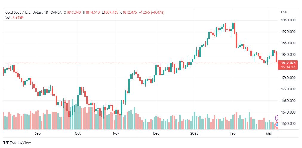 يذكر انه قد تم تداول سعر الذهب (الرمز: XAUUSD) بسلبية ملحوظة يوم أمس، ليؤكد كسر مستوى 1828.70 ويغلق الشمعة اليومية دونه، مما يضع السعر تحت الضغط التصحيحي الهابط من جديد، في طريقه لزيارة مستوى 1788.20 كهدف رئيسي تالي.