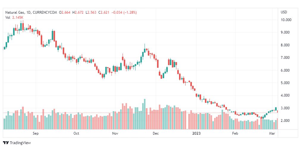 الغاز الطبيعي في حالة تذبذب ضمن المسار الهابط